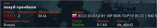 Играет на Counter Strike Global Offensive сервере. Страна: РоссияПервый раз замечен 20:15 26.04.2025