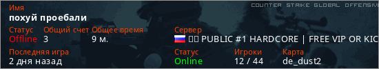 Играет на Counter Strike Global Offensive сервере. Страна: РоссияПервый раз замечен 08:58 26.05.2025