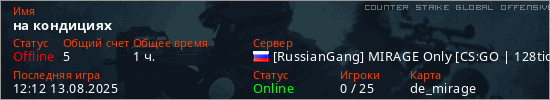 Играет на Counter Strike Global Offensive сервере. Страна: РоссияПервый раз замечен 13:30 23.08.2024