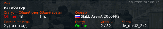 Последний раз был в сети 2 дня назад Игрок с таким ником замечен на 30 серверах