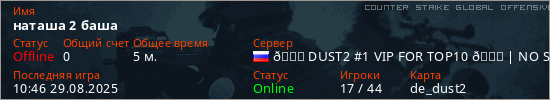 Играет на Counter Strike Global Offensive сервере. Страна: РоссияПервый раз замечен 10:36 29.08.2025