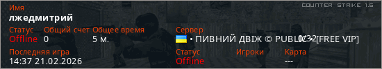 Играет на Counter Strike 1.6 сервере. Страна: УкраинаПервый раз замечен 14:35 21.02.2026