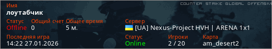 Играет на Counter Strike Global Offensive сервере. Страна: УкраинаПервый раз замечен 14:11 27.01.2026