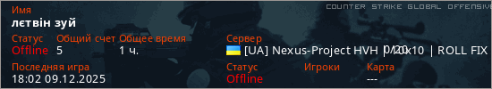 Играет на Counter Strike Global Offensive сервере. Страна: УкраинаПервый раз замечен 16:35 09.12.2025