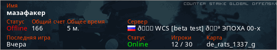 Играет на Counter Strike Global Offensive сервере. Страна: РоссияПервый раз замечен 12:36 06.03.2026