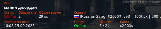 Играет на Counter Strike Source сервере. Страна: РоссияПервый раз замечен 20:17 18.09.2023