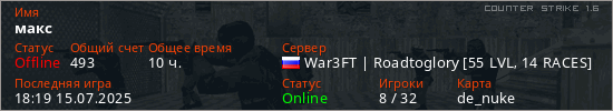 Последний раз был в сети 18:19 15.07.2025 Игрок с таким ником замечен на 45 серверах