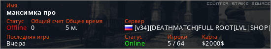 Последний раз был в сети Вчера Игрок с таким ником замечен на 3 серверах