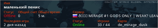 Играет на Counter Strike Global Offensive сервере. Страна: РоссияПервый раз замечен 21:34 11.03.2026