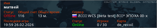Играет на Counter Strike Global Offensive сервере. Страна: РоссияПервый раз замечен 06:27 16.02.2026