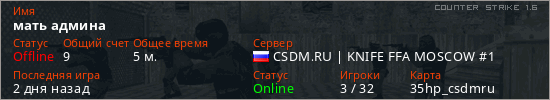 Последний раз был в сети 2 дня назад Игрок с таким ником замечен на 3 серверах