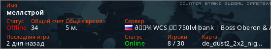 Последний раз был в сети 2 дня назад Игрок с таким ником замечен на 14 серверах