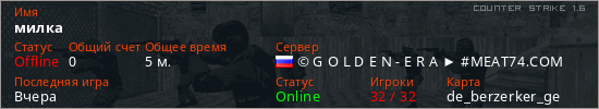 Последний раз был в сети Вчера Игрок с таким ником замечен на 14 серверах
