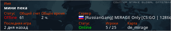 Играет на Counter Strike Global Offensive сервере. Страна: РоссияПервый раз замечен 12:29 09.03.2026