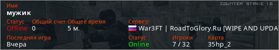 Последний раз был в сети Вчера Игрок с таким ником замечен на 19 серверах