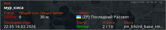 Играет на Counter Strike 1.6 сервере. Страна: УкраинаПервый раз замечен 20:23 23.01.2026
