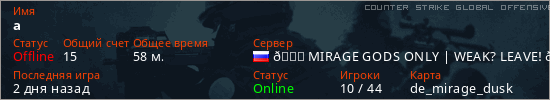 Играет на Counter Strike Global Offensive сервере. Страна: РоссияПервый раз замечен 15:47 22.08.2024