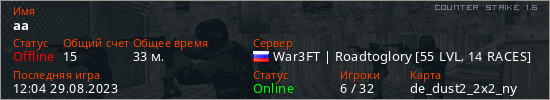 Играет на Counter Strike 1.6 сервере. Страна: РоссияПервый раз замечен 13:24 24.08.2021