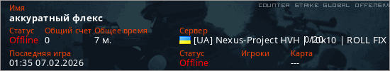 Играет на Counter Strike Global Offensive сервере. Страна: УкраинаПервый раз замечен 01:30 07.02.2026