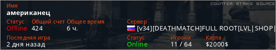 Последний раз был в сети Вчера Игрок с таким ником замечен на 4 серверах