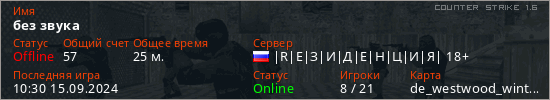 Играет на Counter Strike 1.6 сервере. Страна: РоссияПервый раз замечен 12:04 22.02.2024