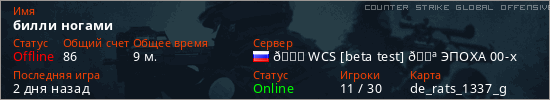 Играет на Counter Strike Global Offensive сервере. Страна: РоссияПервый раз замечен 11:35 05.03.2026