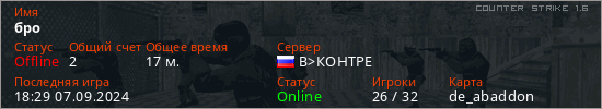 Последний раз был в сети 18:29 07.09.2024 Игрок с таким ником замечен на 17 серверах