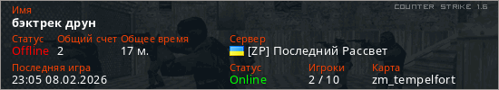 Играет на Counter Strike 1.6 сервере. Страна: УкраинаПервый раз замечен 19:20 08.02.2026