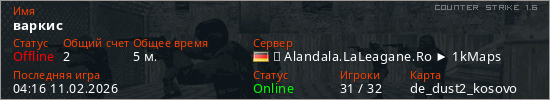 Играет на Counter Strike 1.6 сервере. Страна: ГерманияПервый раз замечен 04:14 11.02.2026