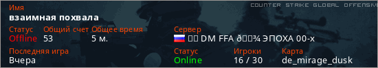 Играет на Counter Strike Global Offensive сервере. Страна: РоссияПервый раз замечен 03:42 06.03.2026