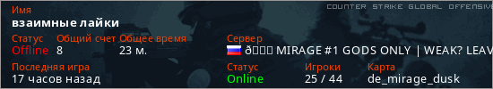 Играет на Counter Strike Global Offensive сервере. Страна: РоссияПервый раз замечен 11:05 05.12.2024