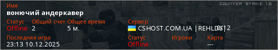 Играет на Counter Strike 1.6 сервере. Страна: УкраинаПервый раз замечен 23:11 10.12.2025