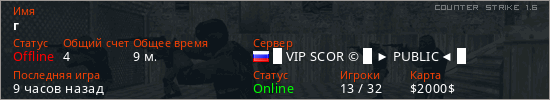Играет на Counter Strike 1.6 сервере. Страна: РоссияПервый раз замечен 20:49 18.02.2026