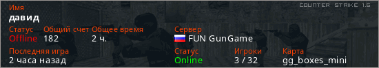Последний раз был в сети 53 минуты назад Игрок с таким ником замечен на 19 серверах