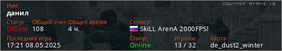 Последний раз был в сети 17:21 08.05.2025 Игрок с таким ником замечен на 34 серверах