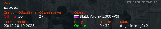 Последний раз был в сети 20:12 28.10.2025 Игрок с таким ником замечен на 9 серверах