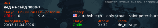 Играет на Counter Strike Global Offensive сервере. Страна: СШАПервый раз замечен 20:17 06.04.2026