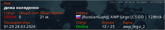 Играет на Counter Strike Global Offensive сервере. Страна: РоссияПервый раз замечен 09:20 20.02.2026