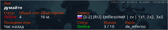 Играет на Counter Strike Global Offensive сервере. Страна: РоссияПервый раз замечен 21:26 05.12.2025