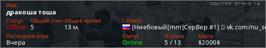 Последний раз был в сети Вчера Игрок с таким ником замечен на 3 серверах