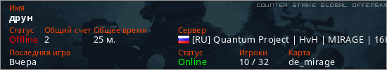 Последний раз был в сети Вчера Игрок с таким ником замечен на 32 серверах