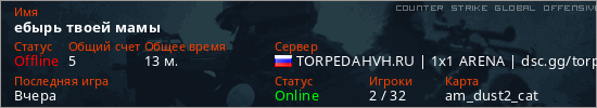 Последний раз был в сети Вчера Игрок с таким ником замечен на 9 серверах