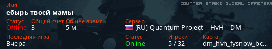 Играет на Counter Strike Global Offensive сервере. Страна: РоссияПервый раз замечен 12:45 20.04.2026