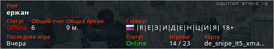 Последний раз был в сети Вчера Игрок с таким ником замечен на 15 серверах