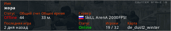 Играет на Counter Strike 1.6 сервере. Страна: РоссияПервый раз замечен 14:06 28.07.2022