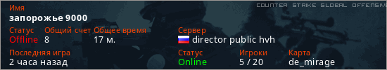 Последний раз был в сети Час назад Игрок с таким ником замечен на 8 серверах