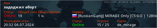 Играет на Counter Strike Global Offensive сервере. Страна: РоссияПервый раз замечен 18:00 05.09.2023