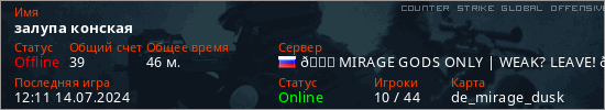 Играет на Counter Strike Global Offensive сервере. Страна: РоссияПервый раз замечен 20:23 29.06.2024