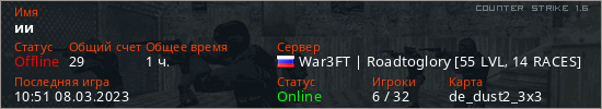 Последний раз был в сети 10:51 08.03.2023 Игрок с таким ником замечен на 18 серверах