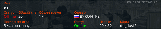 Играет на Counter Strike 1.6 сервере. Страна: РоссияПервый раз замечен 11:49 11.03.2023